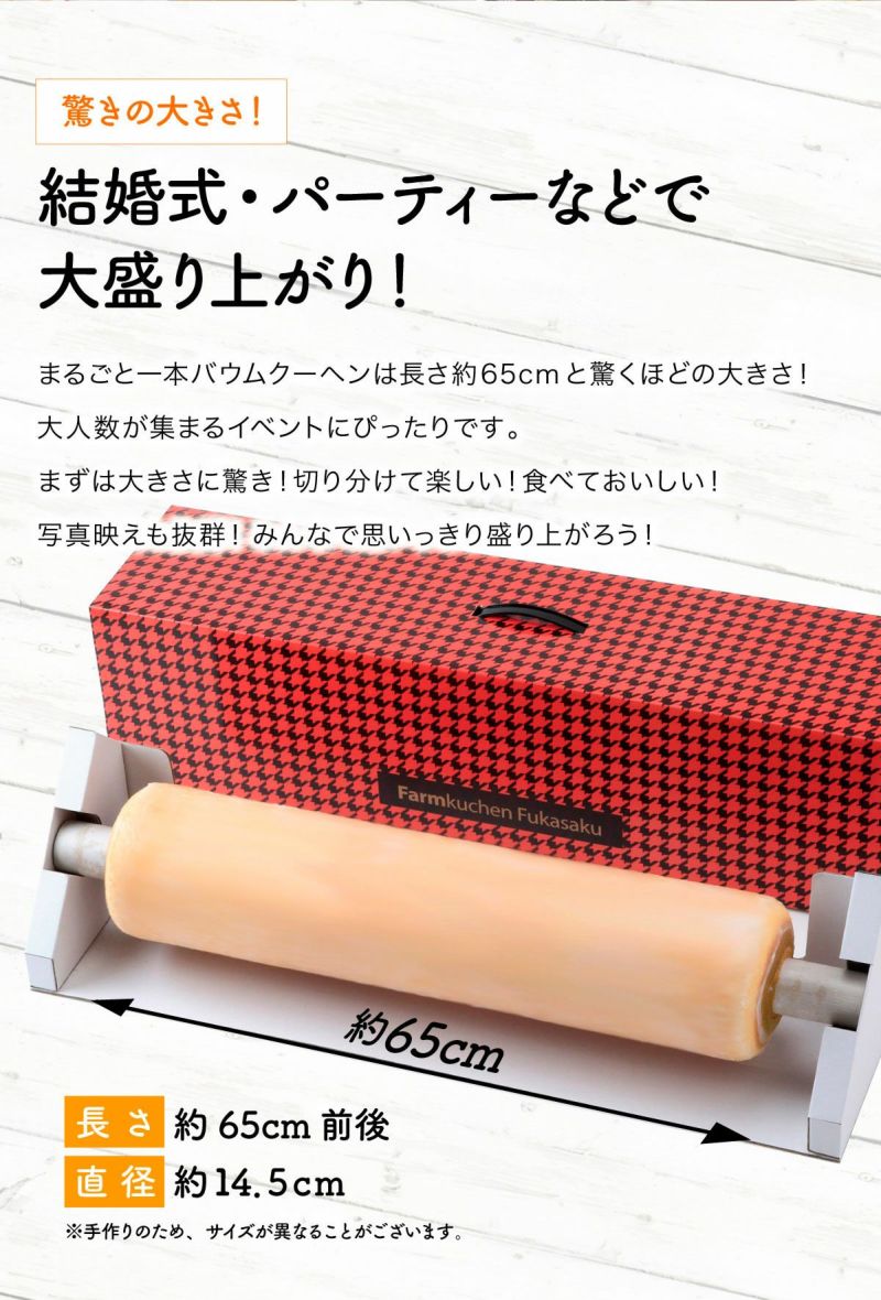 農家が作ったバームクーヘン 特大 一本バウムクーヘン 【ご注文から10日後発送/大型送料】バウムクーヘン焼き姿のままお届け【キャンセル不可】