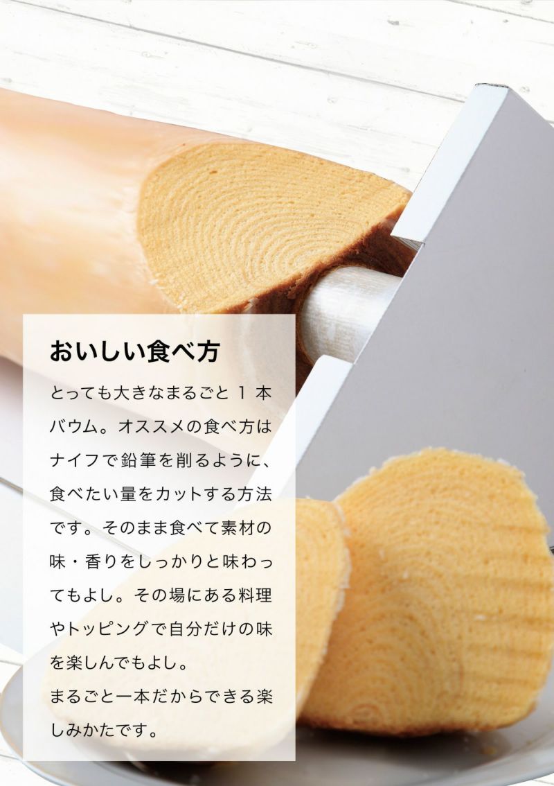 一本バウムクーヘンはオーダーメイド商品のため、変更またはキャンセルはできません。